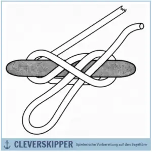Statt dem Kopfschlag zur Sicherung der Leine, wird ein eine Bucht (Schlaufe) gelegt. Dies hat den Vorteil, dass die Leine im Bedarfsfall sofort wieder frei ist.
