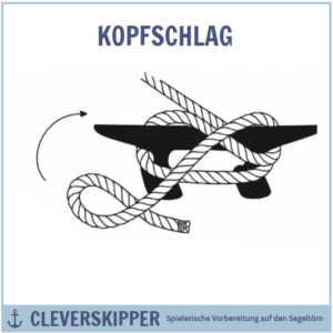 Der Kopfschlag ist der finale Schritt beim Festmachen einer Leine an einer Klampe. Er dient dazu, die zuvor gelegten Wicklungen (Kreuzschläge) sicher zu fixieren und ein ungewolltes Lösen des Tauwerks zu verhindern.